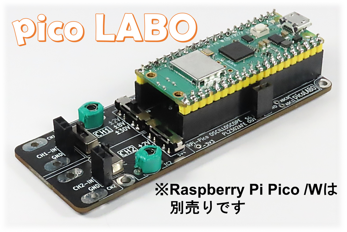 PicoW単体でもオシロスコープとして使用できますが、入力インピーダンスの改善やレンジ切り替えなど、より便利に使える基板(PL2302AFE)がpicolaboさんから販売されています。